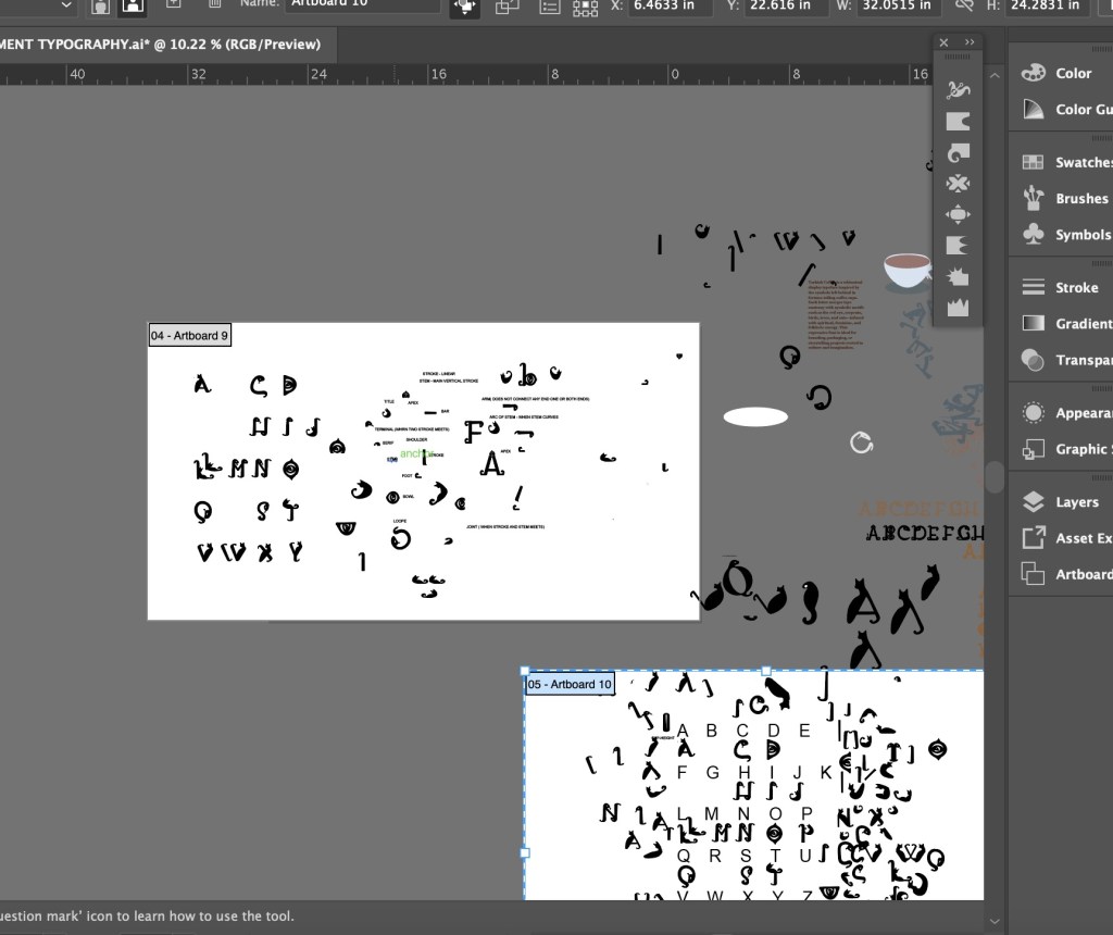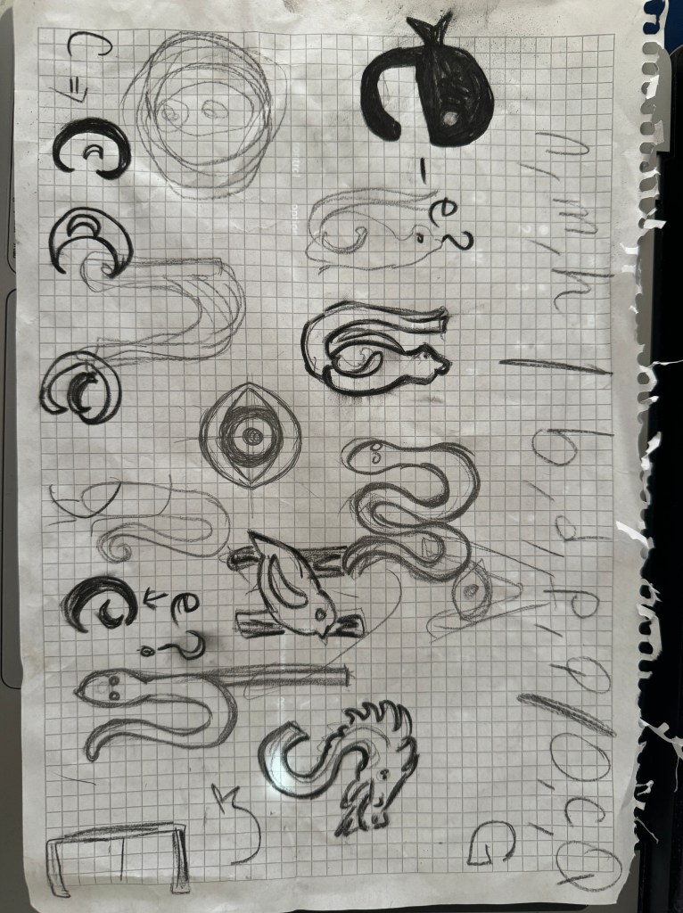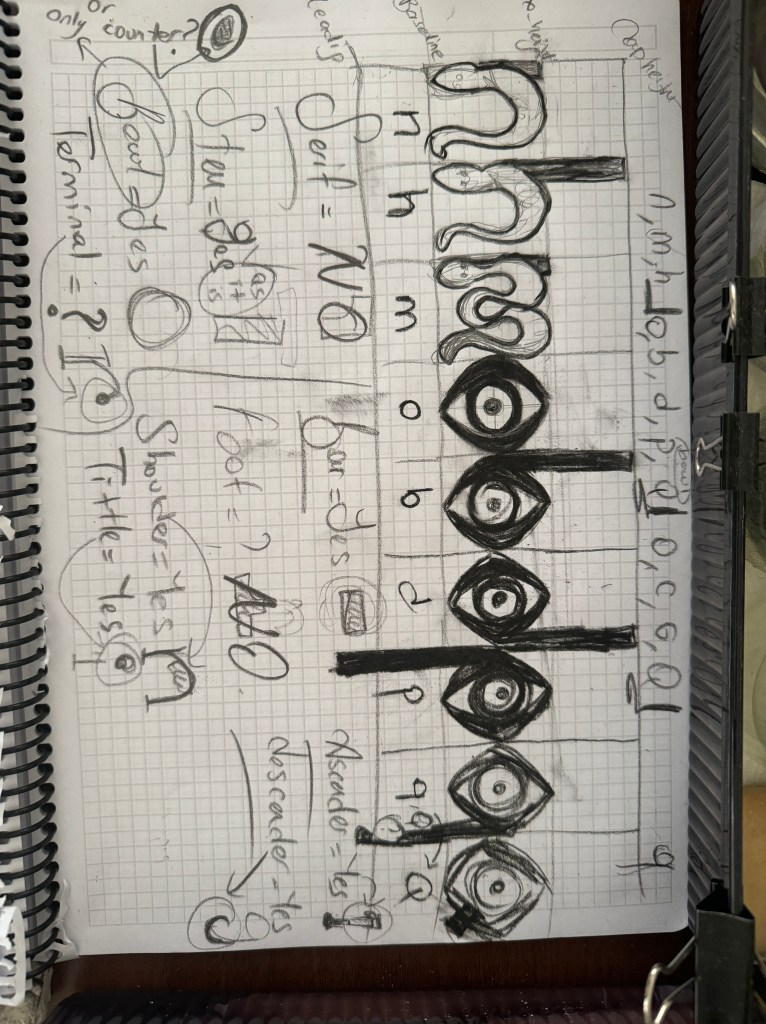 I began by sketching the most commonly interpreted symbols in traditional coffee readings. Working by hand allowed me to tap into their organic, imperfect shapes. I then experimented with integrating those forms into letter structures—snakes forming stems and spines, cats shaping counters, and eyes taking the place of bowls and terminals.